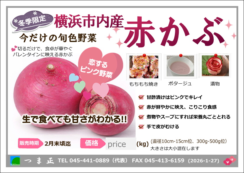 お待たせしました!横浜市内産の「赤かぶ」です。