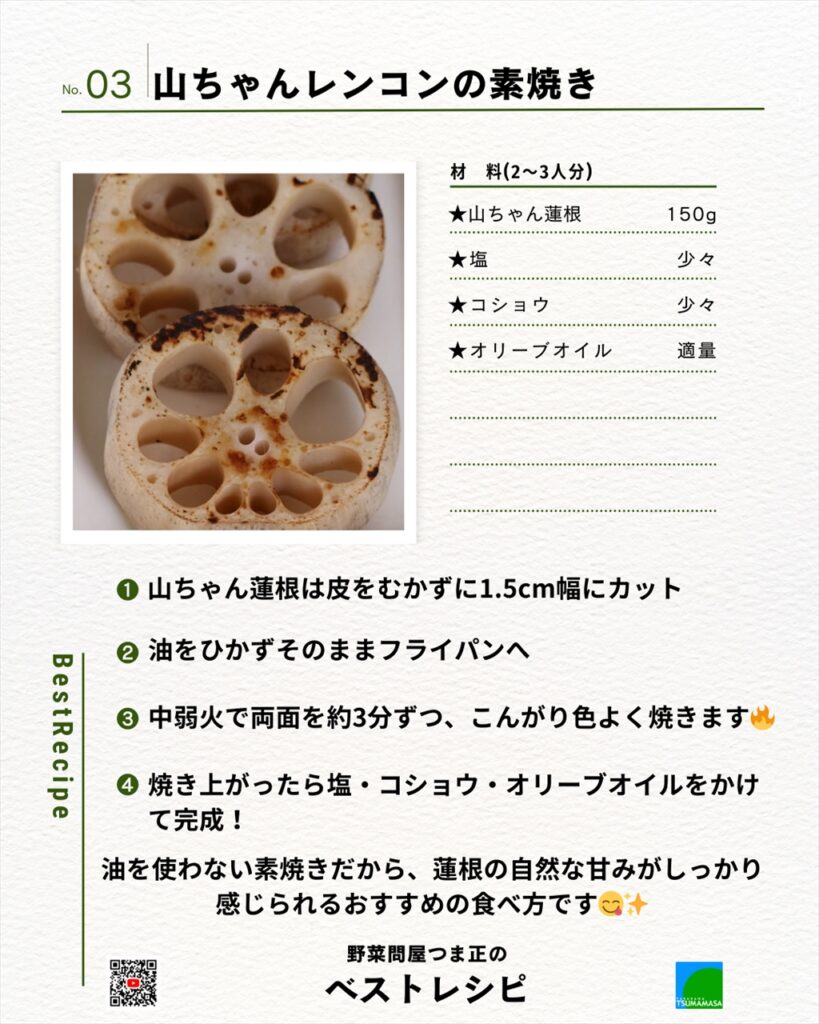 「山ちゃんレンコンの素焼き」です。